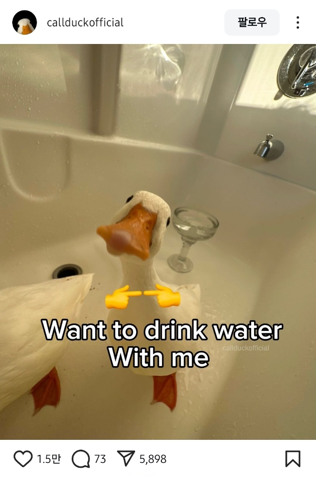 "이 오리🦢를 본 당신, 물을 드세요(Drink Water)"