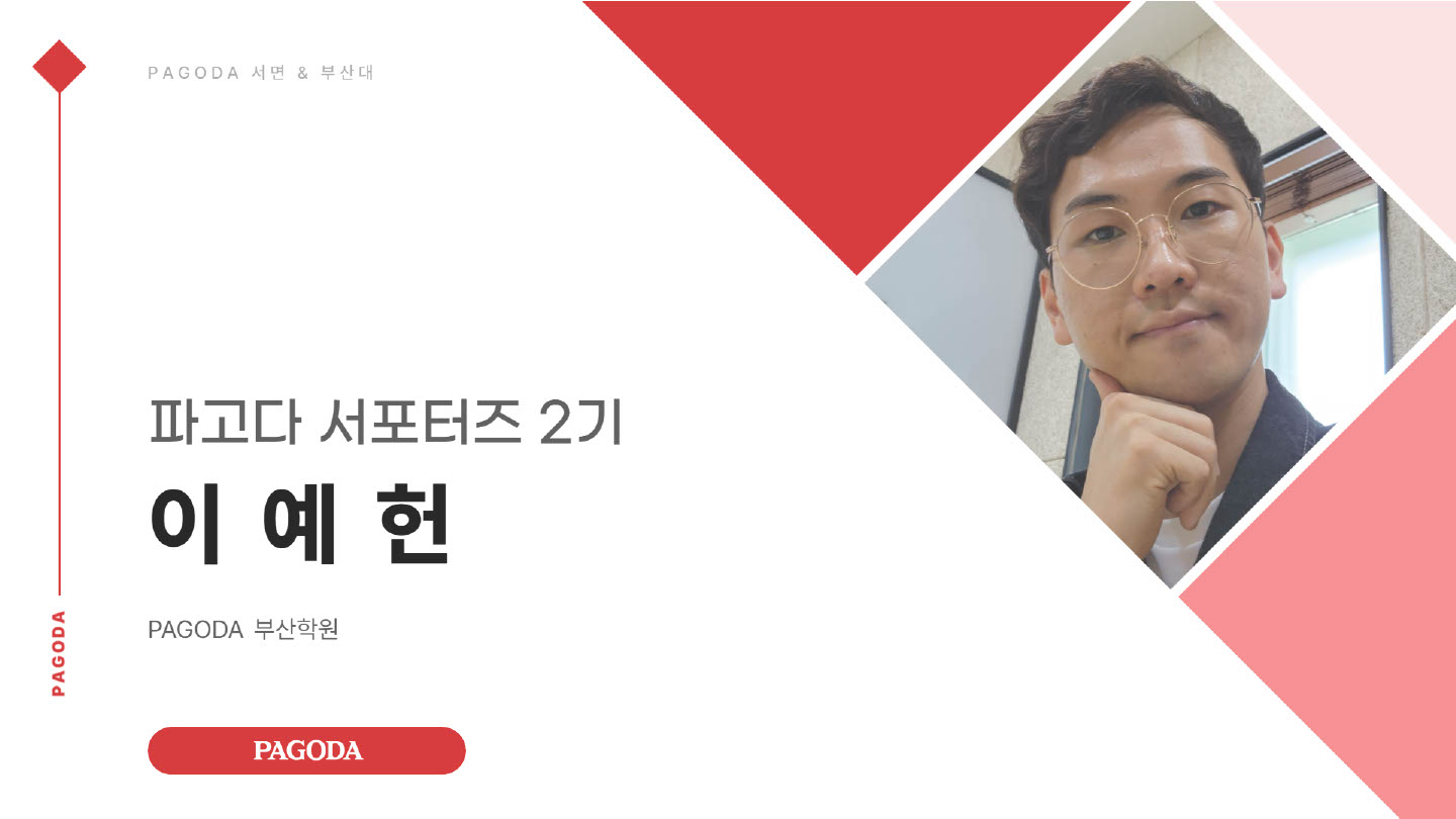 부산 파고다 서포터즈 2기로 활동 중인 레남(예헌)입니다.