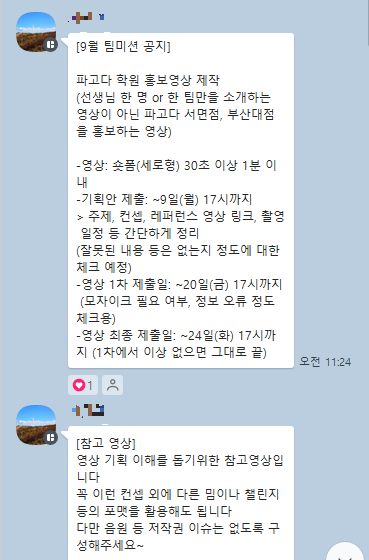 부산 파고다 서포터즈 9월 팀미션에선